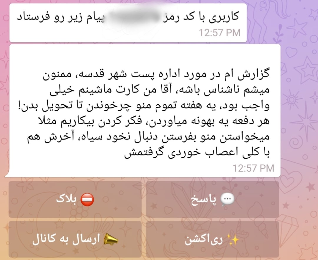 نکته قابل تأمل و البته تأسفبار در گزارشها، استفاده از تاکتیکهای عجیب برای منصرف کردن مراجعین از پیگیری است. گزارش شده که در مواردی، شمارهای (مشابه 23**0936871) به عنوان تلفن مستقیم نامهرسان ارائه میشود، اما بلافاصله با یک جمله مکمل همراه میشود: البته الان تماس نگیرید چون همسرش بیمارستان است و پاسخگو نیست!